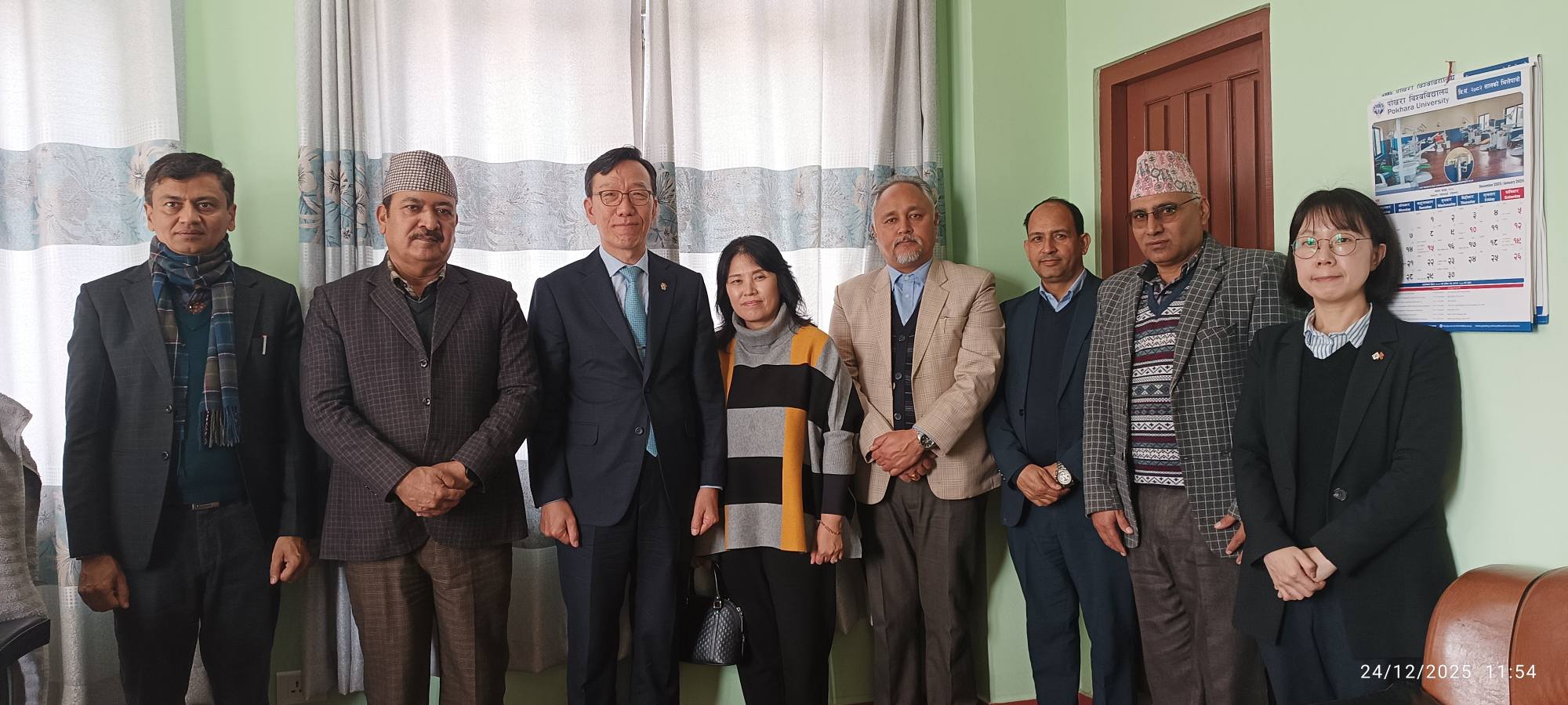 यसै क्रममा विश्वविद्यालयका उपकुलपति प्रा.डा. बेदराज के.सी., रजिष्ट्रार सह–प्रा.डा. अजय थापा, स्वास्थ्य विज्ञान संकायका डीन प्रा.डा. विष्णुराज तिवारी, व्यवस्थापन संकायका डीन प्रा.डा. ज्ञानेश्वर शर्मा, विज्ञान तथा प्रविधि संकायका डीन सह–प्रा. बुद्धिराज जोशी तथा अन्तर्राष्ट्रिय सम्बन्ध केन्द्रका निर्देशक सह–प्रा. डा. दीपाञ्जल श्रेष्ठसँग भेटघाट तथा छलफल भएको थियो। छलफलमा विश्वविद्यालयको शैक्षिक सुदृढीकरण, पोखरा विश्वविद्यालयमा कोरियाली सहयोगका सम्भावना तथा पोखरा विश्वविद्यालय र दक्षिण कोरियाबीचको सम्बन्ध विस्तारका विषयमा विचार–विमर्श गरिएको थियो।