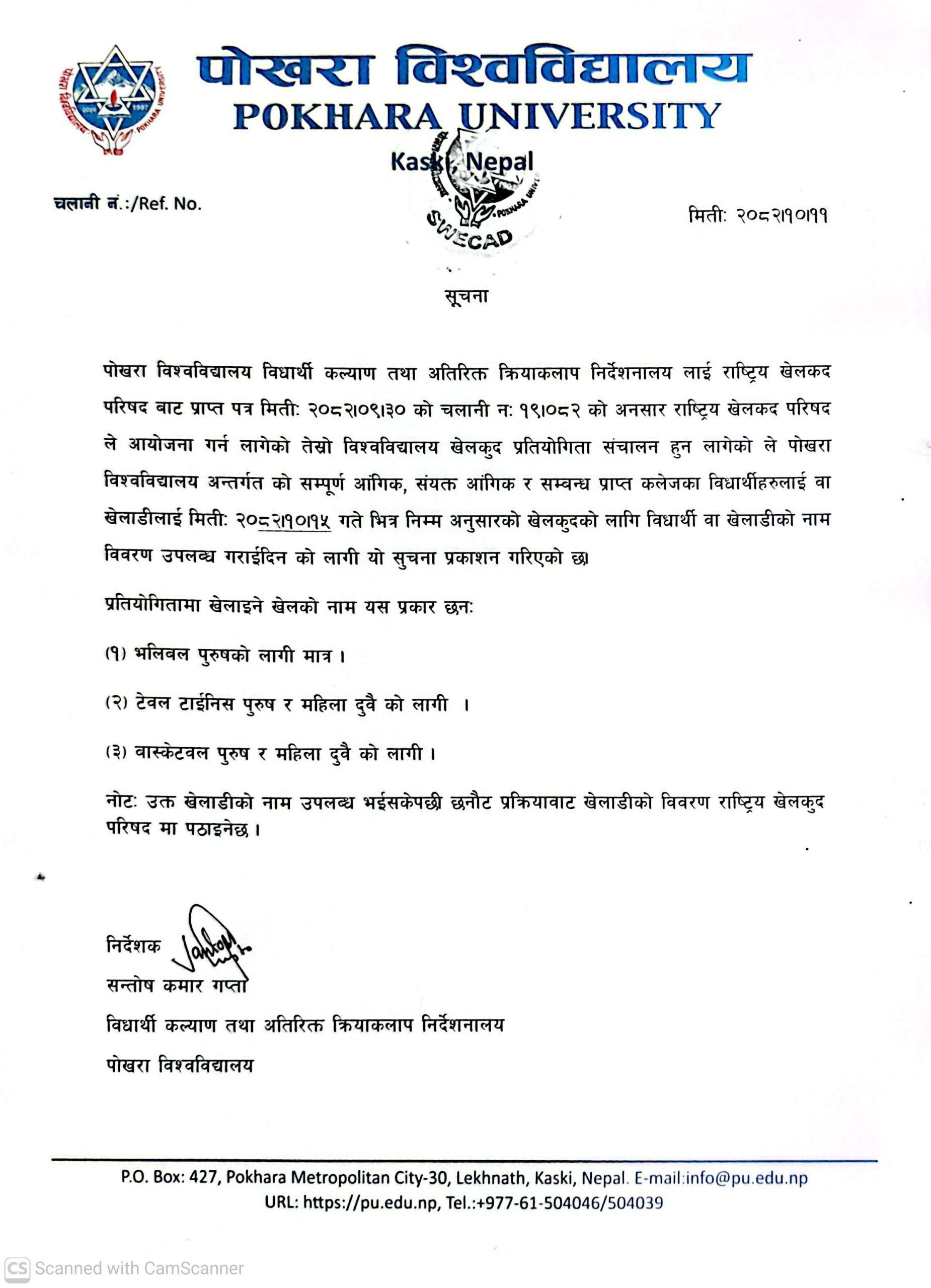 तेस्रो विश्वविद्यालय खेलकुद प्रतियोगिता सम्बन्धी सूचना !