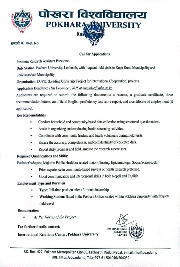 - पोखरा विश्वविद्यालय विज्ञान तथा प्रविधि संकाय, अन्तर्गत स्नातकोत्तर तह छात्रवृत्ति छनौट प्रवेश परीक्षा (August Intake 2025) मा Category D अन्तर्गत छात्रवृत्तिमा आवेदन पेश गर्न सम्बन्धि सूचना ।