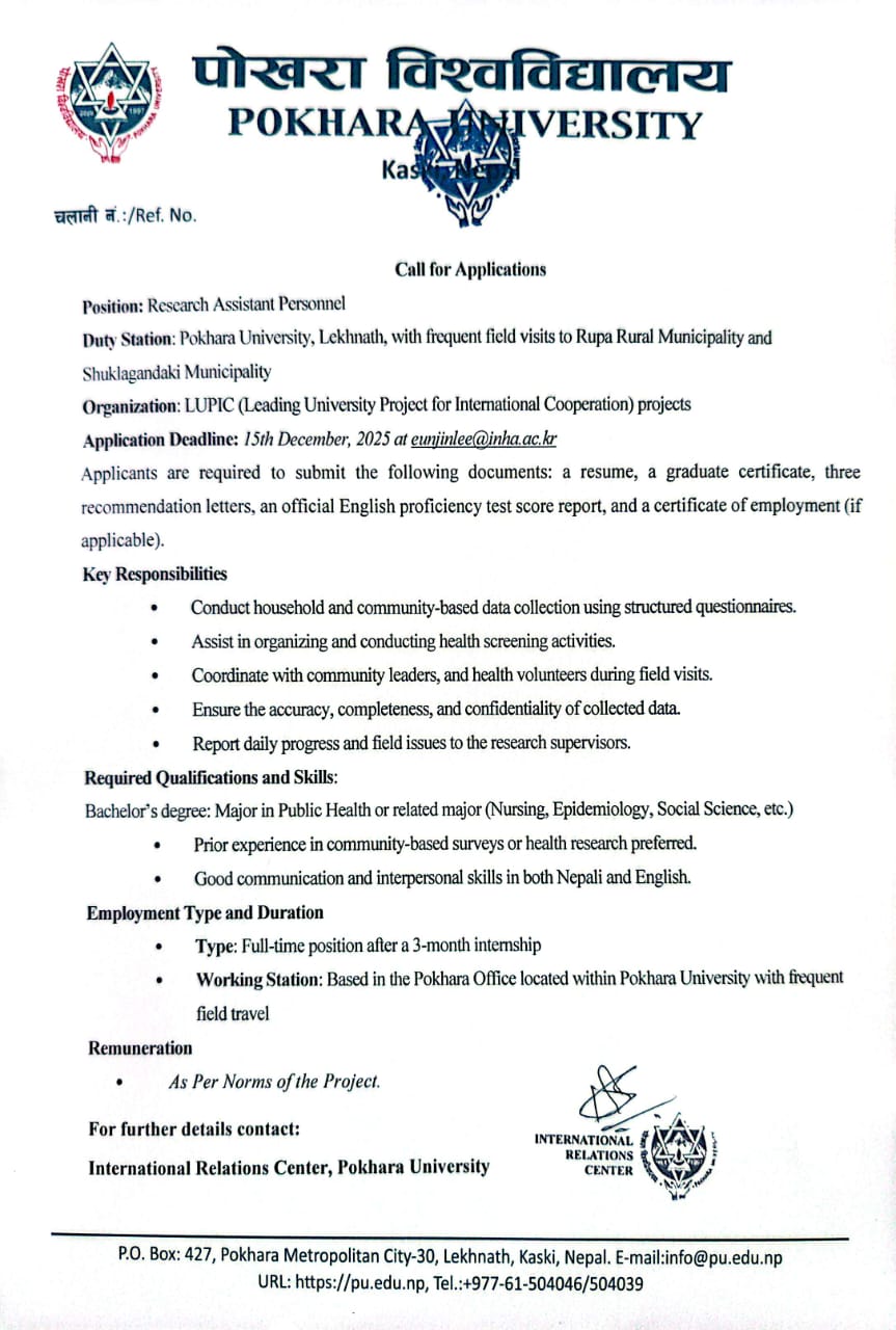 - करार सेवामा शिक्षक पदपूर्ति सम्बन्धी सूचना:पोखरा विश्वविद्यालय, श्रमिक शान्ती क्याम्पस !