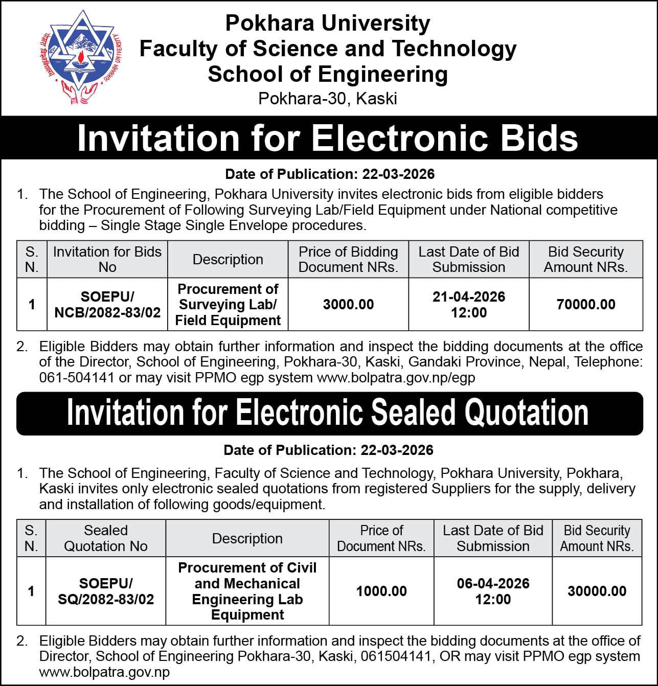 - सिभिल र मेकानिकल ल्याबका सामाग्री मर्मतको शिलबन्दी दरभाउपत्र आह्वानको सूचना !