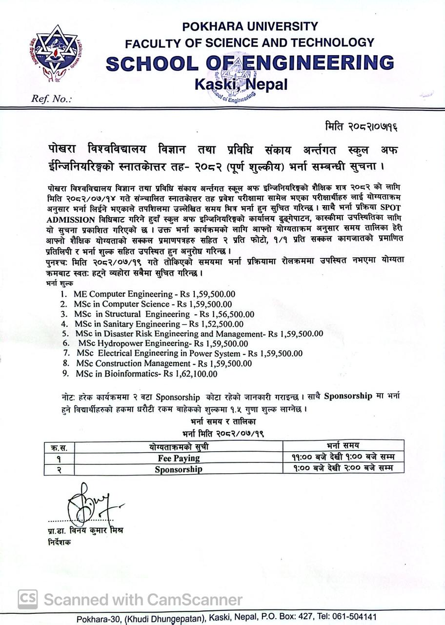 - स्कूल अफ इन्जिनियरिङको स्नातकोत्तरतह तहको पुन:भर्ना सम्बन्धी सूचना !